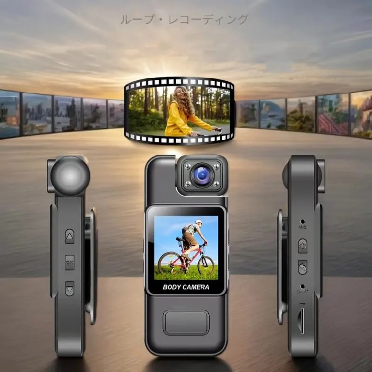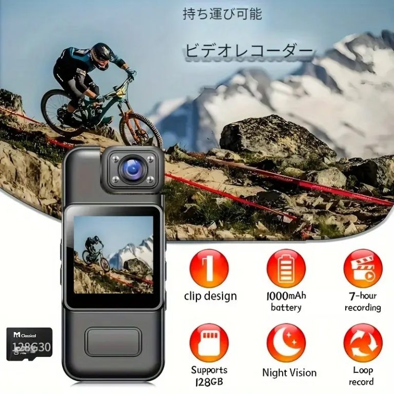 「ニーズに応える多機能性、より良い撮影体験」4個強力なLEDライトが付いているので、真っ黒な所でも画面を鮮明的に映します。180度回転レンズで撮りたい角度に自由に向けられます。製品の真ん中に大きな広角レンズを搭載し、ピントの合う範囲が広くなり、広い視野を実現。携帯とパソコン取り込み用のUSBカードリーダー付属して、スマホとパソコンで録音とビデオをいつでも確認または転送できます。ウォーキングの記録としてリュックにつけて、近くのものから遠くの景色までくっきりと撮影できます。散歩や登山で活躍しそうです。