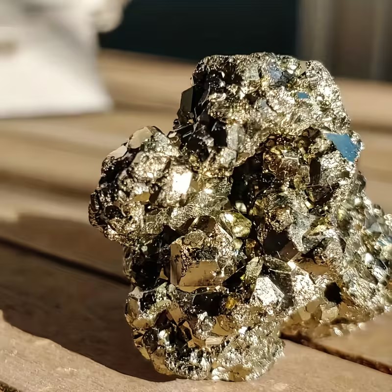 パイライト(黄鉄鉱)は、鉄と硫黄から成る、真鍮色(黄金色)の金属光沢が特徴の硫化鉱物です。自然界で完璧な立方体や八面体の結晶として産出されることが多く、その輝きから「愚者の金」と呼ばれることもあります。硬く重みがありますが、衝撃に弱く、水や塩分に注意が必要です。