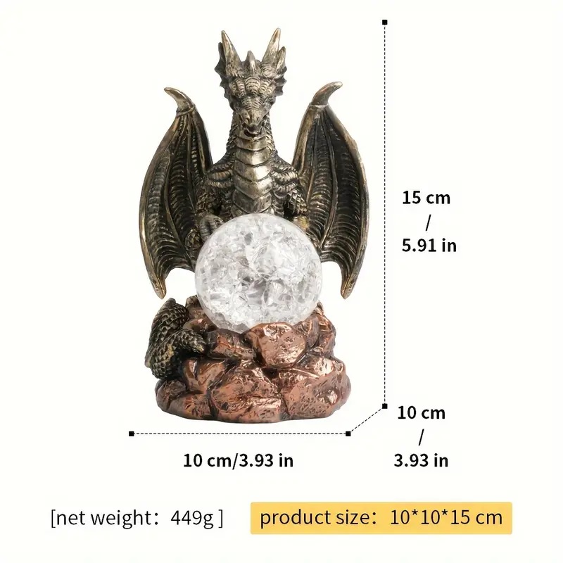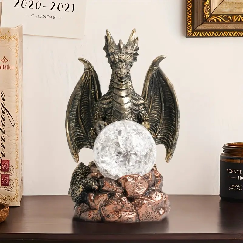 さまざまな部屋のタイプに適した多目的屋内アクセント – クリスタルボールスタンド付きドラゴン置物、家、オフィスデスク、パーティーの装飾用の装飾的な神話像
