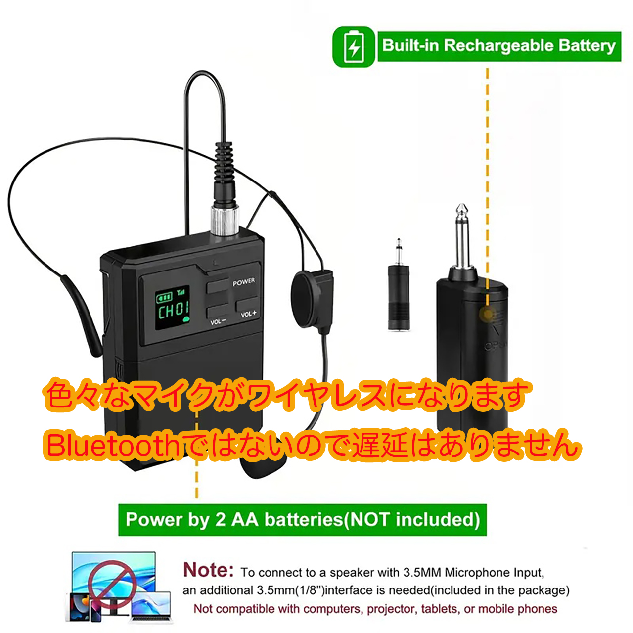 コードレスモジュール NZ−210C ピンマイク、ヘッドマイクなどのエレクトレット型コンデンサーマイクを省線化