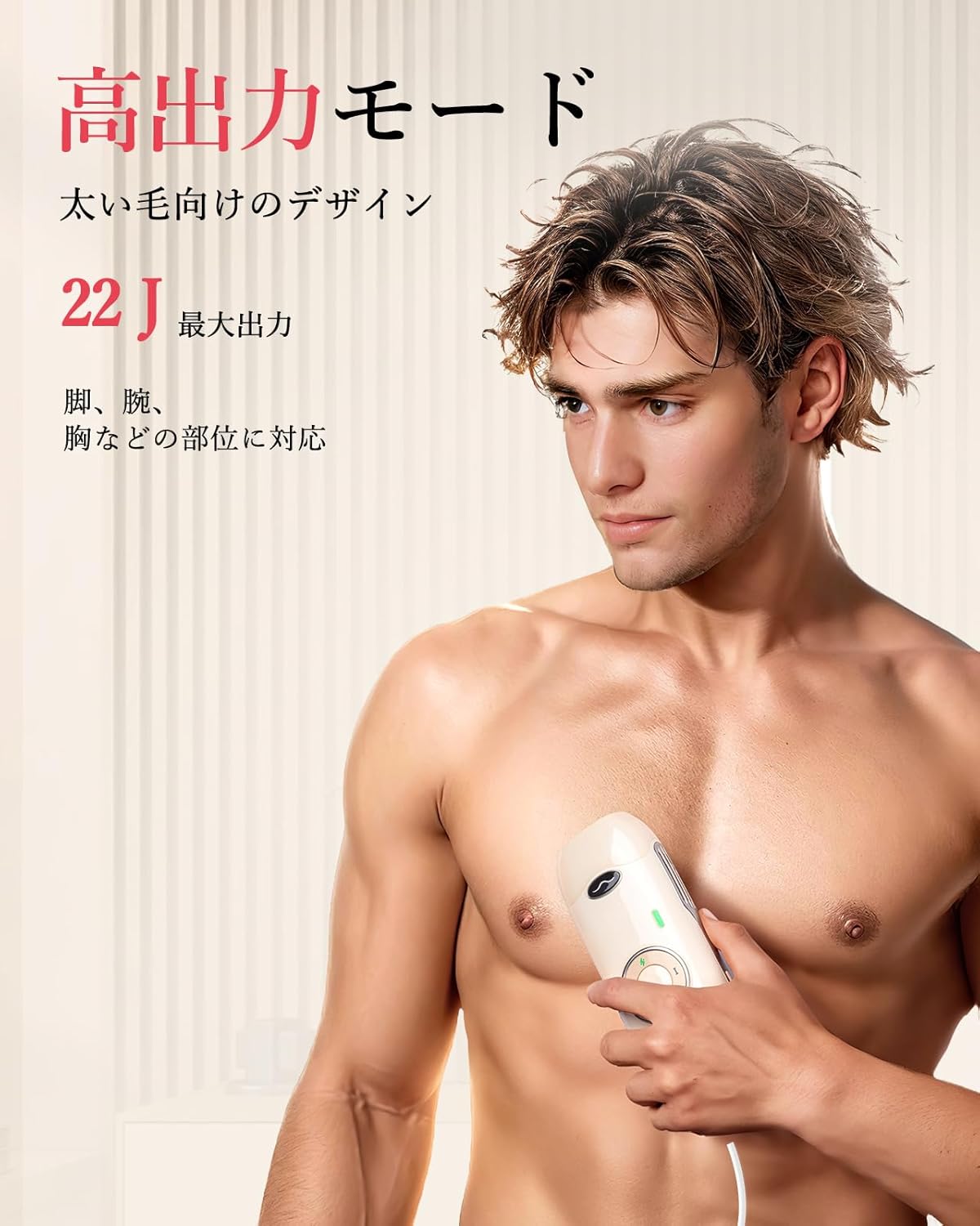 22Jエネルギー・サロン級IPL脱毛器:最新のサロン級IPL光脱毛器を開発し、自宅でも気軽に脱毛を楽しむことができます。最大22Jの照射エネルギー出力を誇り、従来モデルを大幅に超えるパワーを発揮します。10Jから22Jまで合計3レベルを調整可能です。全身脱毛ではなく、VIO部分とメンズの濃いムダ毛にも対応できます。(ヒント:初めて使用時、10Jから試します。)
